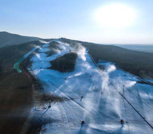第二帧:11月25日,辽宁沈阳东北亚国际滑雪场30台造雪机同时作业,工作人员为11月28日雪场正式开板做准备。据悉,今冬雪季,辽宁省体育局将组织、引导举办125项冰雪赛事活动。
