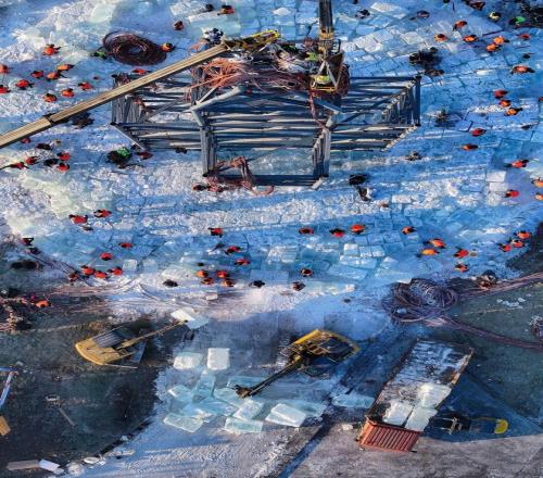第一帧:11月25日,随着20万立方米存冰陆续运抵园区,第二十七届哈尔滨冰雪大世界冰建工程正式启动。目前,主塔龙骨正在搭建,超级冰滑梯施工也已展开。预计于12月中下旬正式开园。