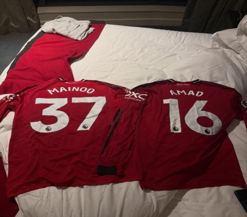 今年9月,英超联赛第5轮,曼联在主场2-1战胜了切尔西。阿马德-迪亚洛首发出战并打满了全场,梅努则是在比赛尾声阶段获得了登场机会,今夏转会至切尔西的加纳乔则是枯坐板凳席、未获登场时间,不知道加纳乔拍摄的这两件球衣是否是这场比赛梅努和阿马德身穿的球衣。