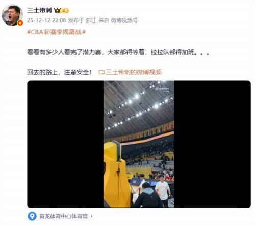 三土带刺:“看看有多少人看完了潜力赛,大家都得等着,拉拉队都得加班。回去的路上,注意安全!”