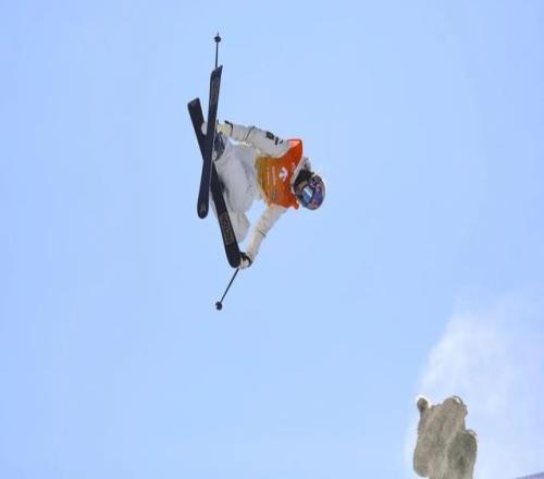2020年1月21日,谷爱凌在瑞士莱森进行的第三届冬季青年奥林匹克运动会自由式滑雪女子大跳台预赛中。新华社记者 逯阳 摄