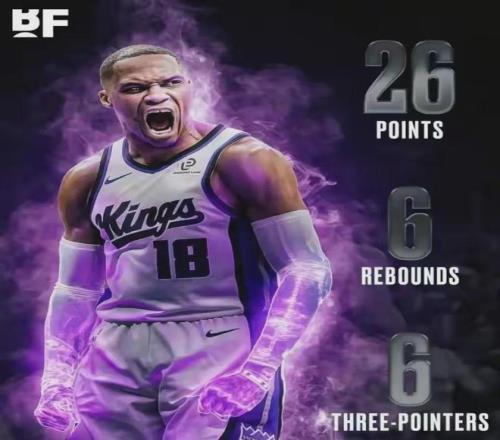 此役威少出战31分钟,投篮14中9,三分9中6贡献26分2板6助。