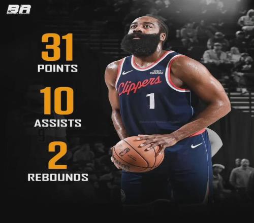 此役单核带队的哈登,出战42分钟,投篮27中10,其中三分15中2,收获31分10助两双数据。