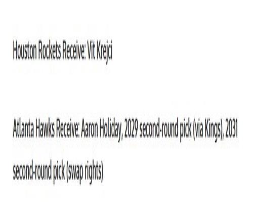 老鹰得到:霍勒迪+29年二轮签+31年二轮签互换