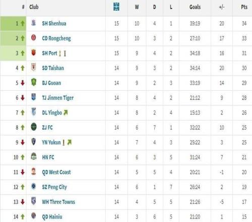 中超最新积分榜:降级3选2,梅州亚泰自救艰难,国安保级送分童子