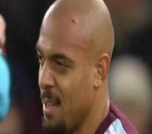 进球后在客队看台前庆祝,马伦的头部被投掷物砸伤了